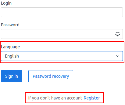 The registration button and language selector cannot be disabled using the platform's standard tools, but they can be hidden by modifying the XML output using plugins.