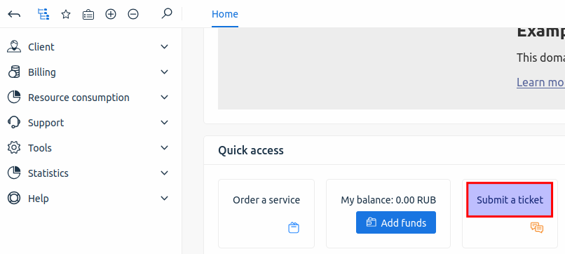 You can write directly to your service provider if you have a question or problem. You can do this with a ticket. You can submit a ticket either from the Home page or from the left side menu under Support → Support tickets.