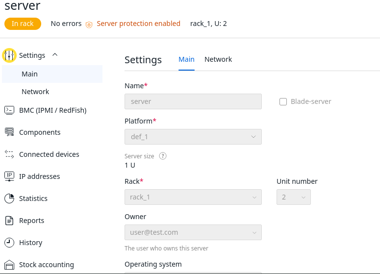 Once protection is activated, the message Server protection is enabled will appear on the server's details page, and the platform will apply the editing restrictions.