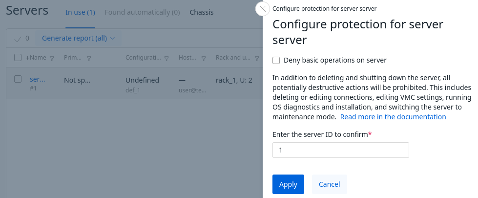 You can protect a server from potentially dangerous actions performed from the platform. This article describes how to activate this protection and the restrictions that will be applied to the server.