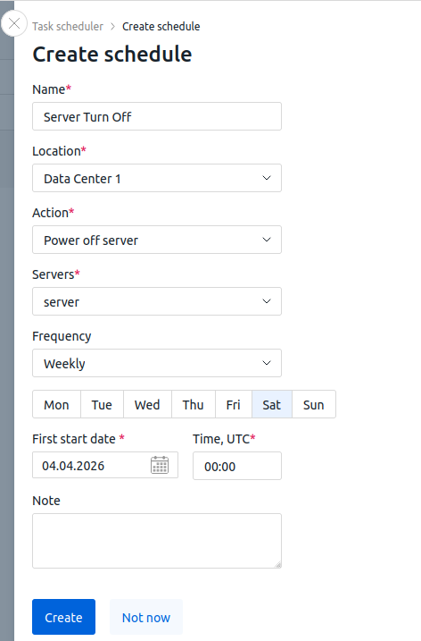 - Click Create schedule. A window will open where you can specify the task parameters.