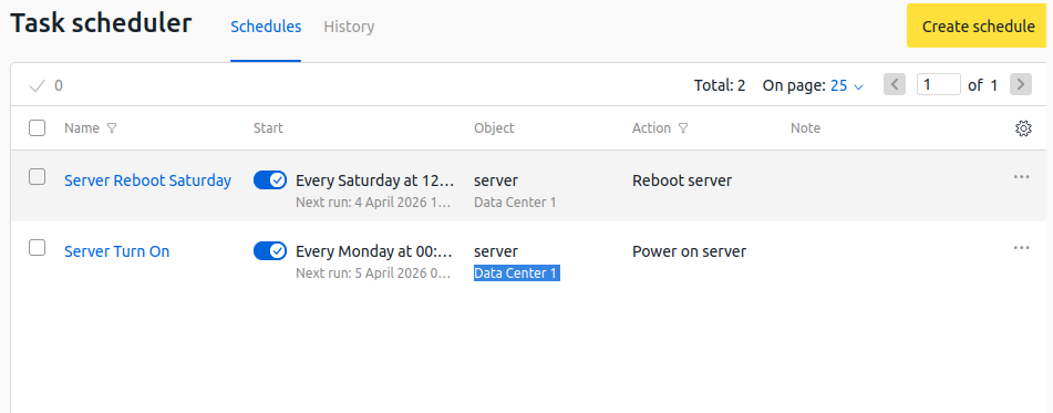 Task scheduler is a platform feature that allows you to configure delayed and recurring operations on equipment.