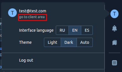 To set up your account, click on username in the top right corner → go to client area link.