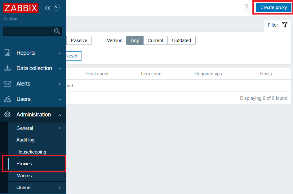 - Enter Administration → Proxies → Create proxy.