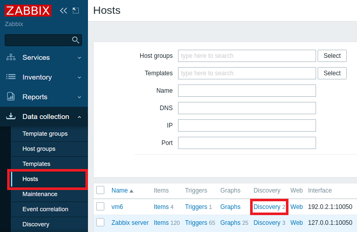- In the Host Inventory section, click Discovery.