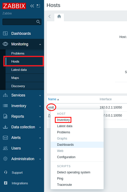 - Enter Monitoring → Hosts → select the server with the platform → Inventory.