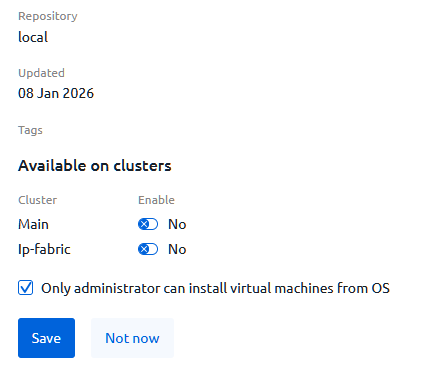 - Enable the Only administrator can install virtual machines from OS option.